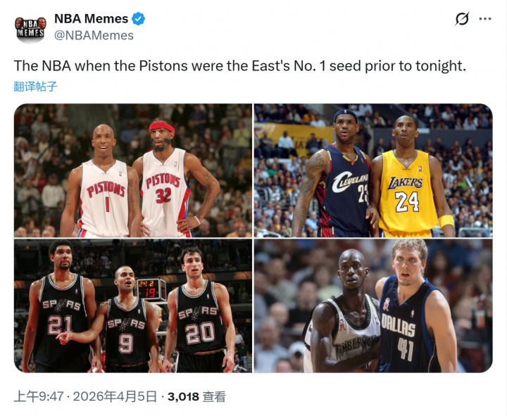 开云赛事集团-美媒感慨:上次活塞东部第1时 科詹还在争锋!GDP还雄霸联盟
